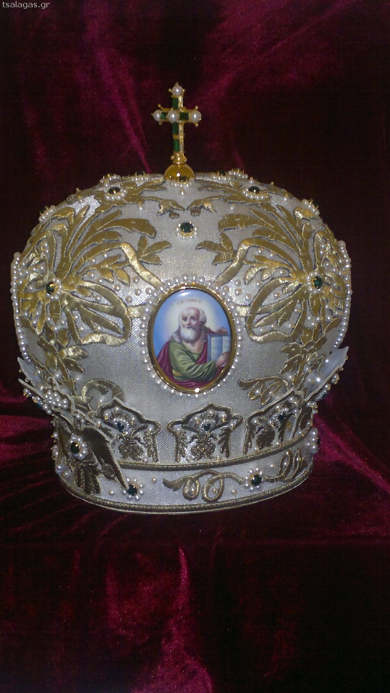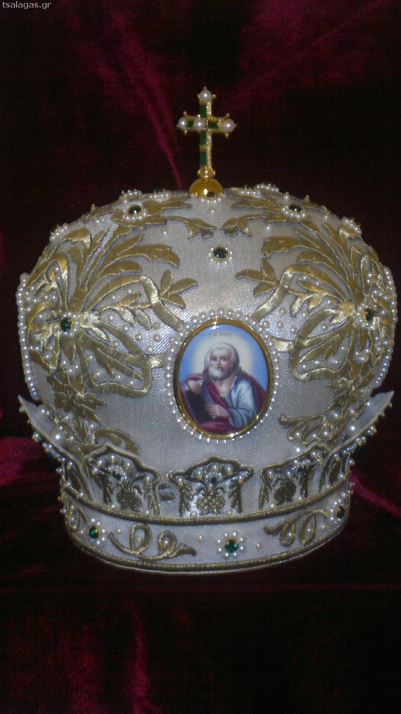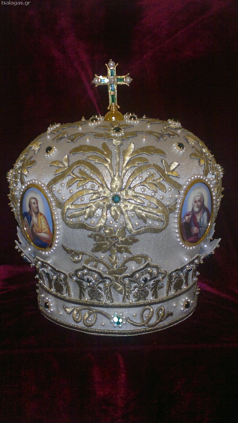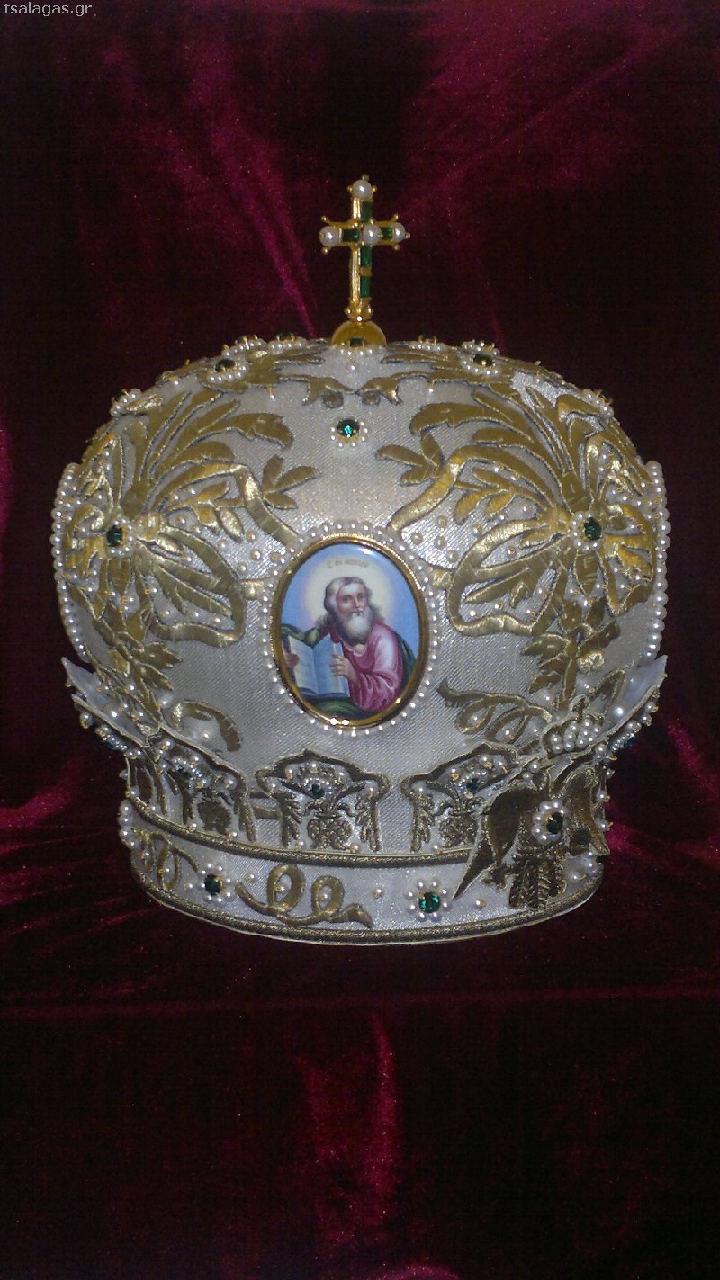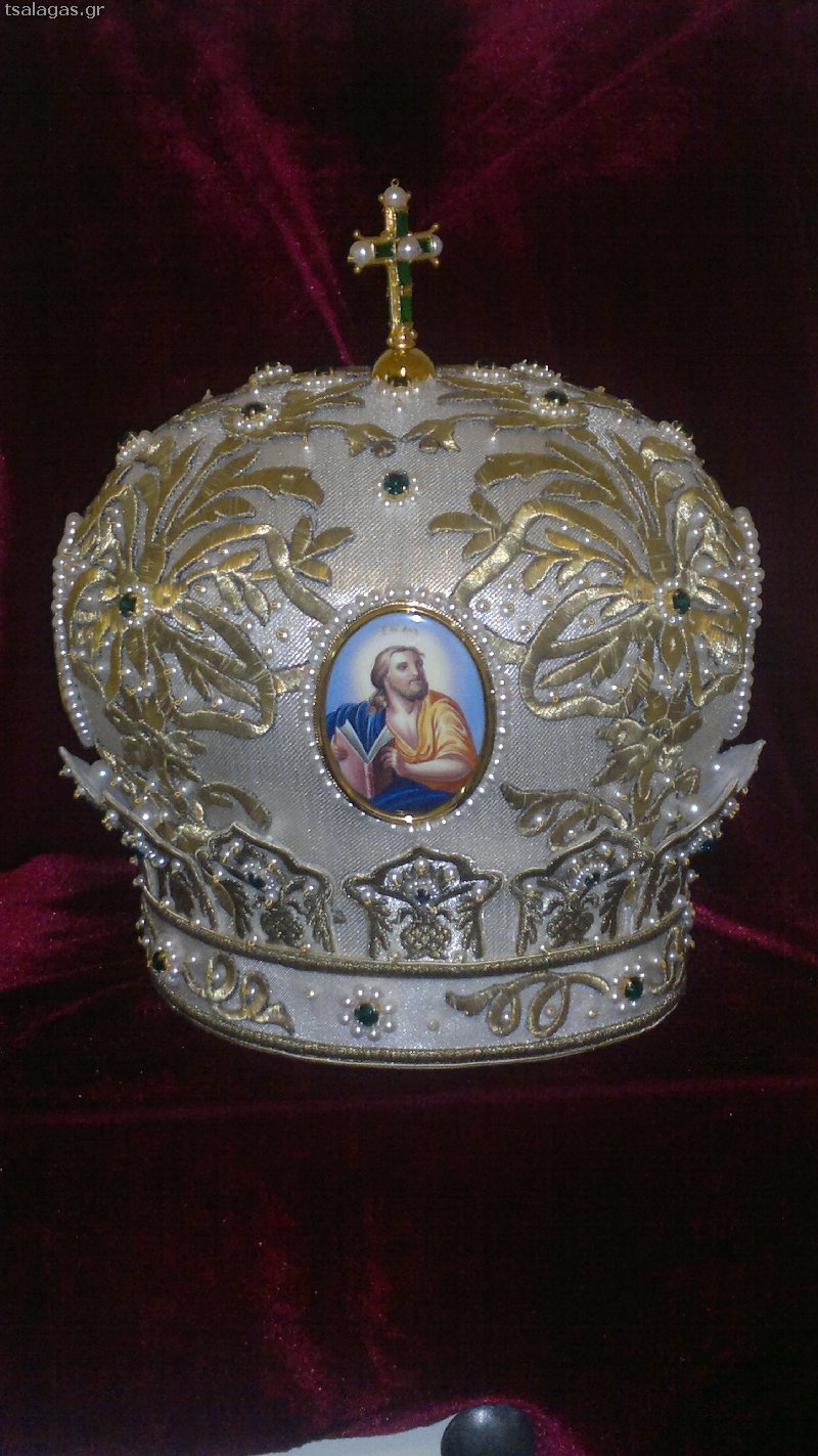 Αρχιερατικές μίτρες κατασκευασμένες από χειροποίητο χρυσοκέντητο καφτάνι. Τα σχέδια έχουν καθαριστεί, κοπεί και μεταφερθεί στο καλούπι της μίτρας με το χέρι. Κατόπιν παραγγελίας μπορούμε να μεταφέρουμε και να προσαρμόσουμε κεντήματα που μας αποστέλλετε.