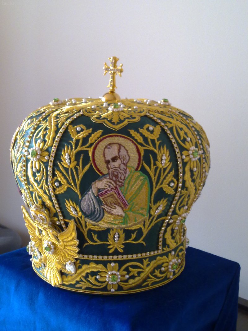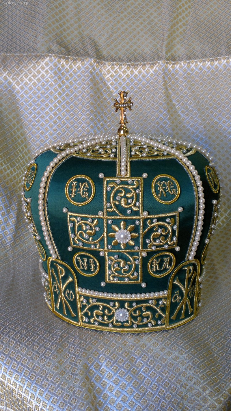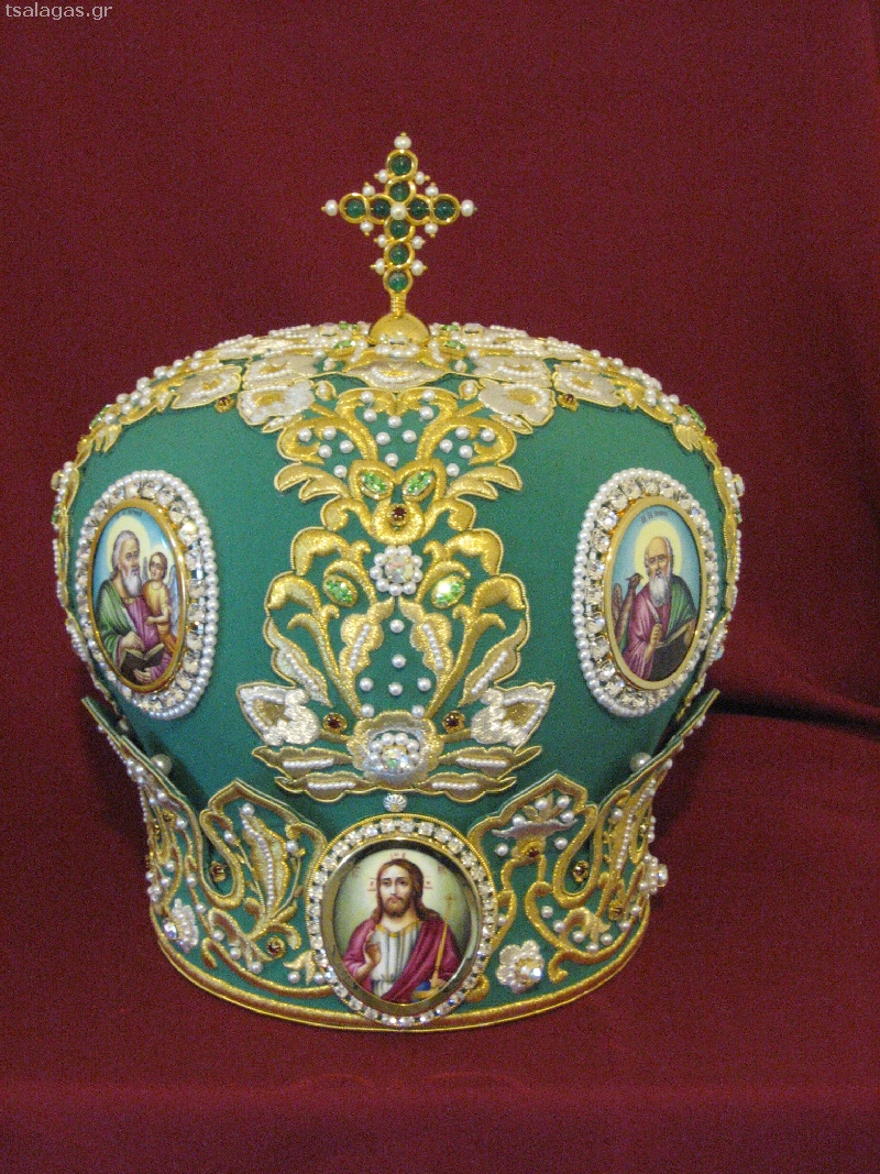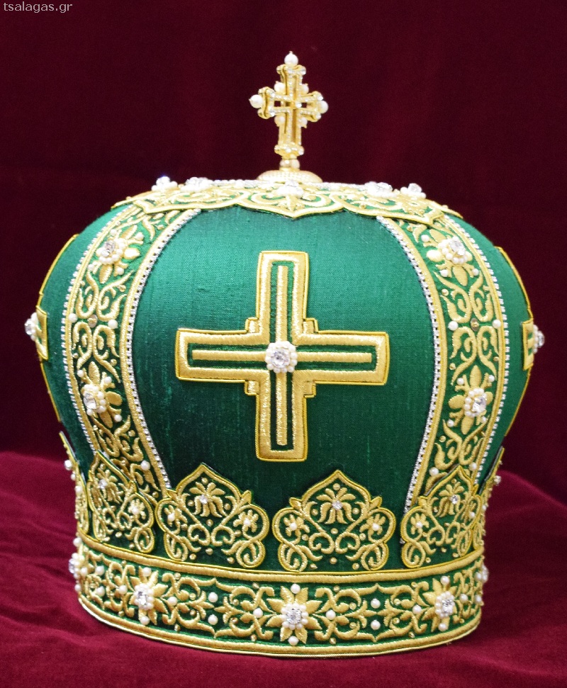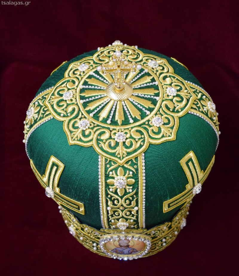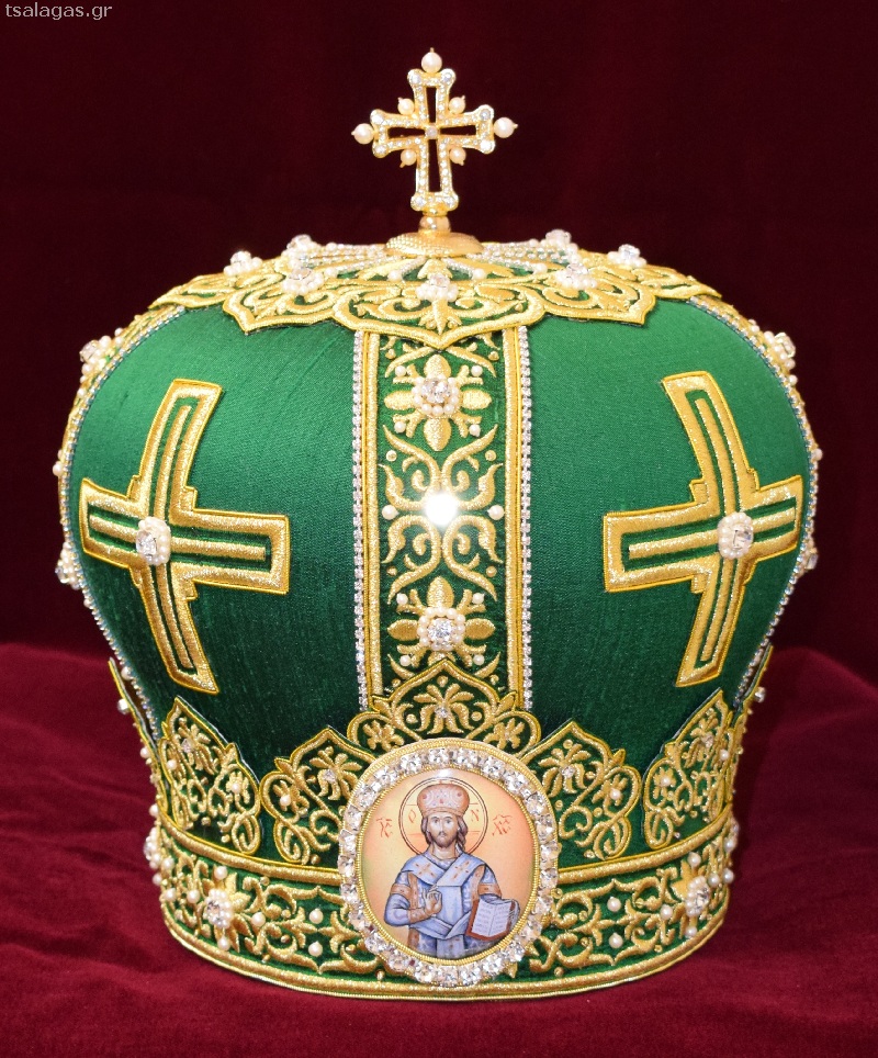 Αρχιερατικές μίτρες, κατασκευασμένες από ύφασμα Μεταξωτό «Πράσινο» κεντημένες με κλωστή χρυσή χρώματος λίρας, ανοιχτό χρυσό και ασημί. Διακοσμημένες με ημιπολύτιμους λίθους και μαργαριτάρια καθώς και σμάλτα ρωσικής τεχνοτροπίας. Υπάρχει δυνατότητα επιλογής χρωματισμού κατόπιν παραγγελίας.